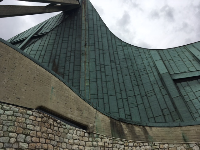 Guidando sulla A11 o A1 abbiamo visto mille volte una chiesa col tetto verde e tutti noi tutti l’abbiamo commentata. Forse non benevolmente, perché appare strana in effetti. E’ la Chiesa di S. Giovanni Battista o Chiesa dell’Austostrada. La struttura, capolavoro del ben noto architetto Michelucci, è sorprendente; unisce in modo inaspettato l’antico (ripropone il nartece paleocristiano ad esempio) al nuovo (il cemento armato). E proprio quel tetto verde che sorprende vuol essere una tenda per il pellegrino che cerca ristoro.